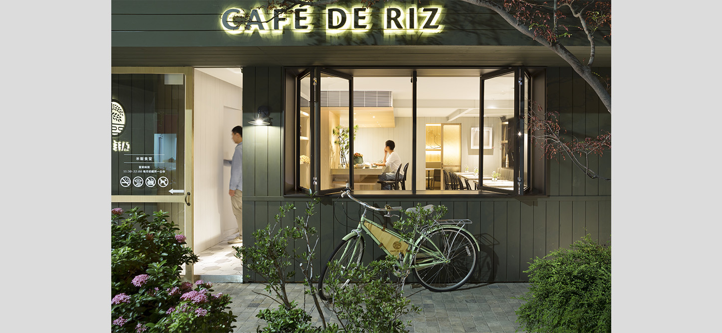 We are eager to communicate and brainstorm with our clients to find their needs and expectations toward a space and create innovative designs. CAFÉ DE RIZ gave us an opportunity to realize this philosophy. Being different from looks of traditional Japanese restaurants, CAFÉ DE RIZ provides a bright and comfortable dining space for female customers.With darker and lighter green colors, its dining area is connecting with green plants in the garden. On the outdoor floor, with every color of history surprisingly matching the garden, stone tiles of the old architecture are preserved to create a natural atmosphere. Semi-open windows are widely used in the cafe to form a space full of light and air. When entering, customers can immediately catch the relaxing mood. With its tiles of contrast colors, wooden bar tables and cafe chairs in the dining area, a comfortable space is created with varied materials and styles.